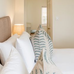 With views out across the rolling countryside and decorated in calm tones the second super king bedroom (Twin beds upon request) has a lovely, relaxed feel, with beautifully soft linens inviting you to rest your head and drift off to holiday dreaming. An en suite completes this beautiful space complete with shower over bath, basin and WC. There is also a dressing area providing ample storage and a tv positioned across from the bed for even more relaxed evenings.