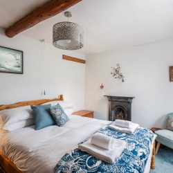 On the ground floor you will find a gallery kitchen with everything required to enhance your stay. The ground floor bathroom is located from the kitchen laid out with a shower, basin and wc. The living room is cosy and spacious laid out with comfy sofas all centred around the open fire. A sperate dining area leads from the lounge – a very inviting snug to hanker down after a long day exploring the rolling countryside. Stairs lead up to the two bedrooms on the first floor, both laid out with double beds, plenty of storage and wonderful views across the village and beyond.