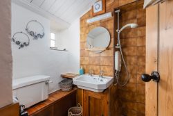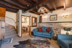 On the ground floor you will find a gallery kitchen with everything required to enhance your stay. The ground floor bathroom is located from the kitchen laid out with a shower, basin and wc. The living room is cosy and spacious laid out with comfy sofas all centred around the open fire. A sperate dining area leads from the lounge – a very inviting snug to hanker down after a long day exploring the rolling countryside. Stairs lead up to the two bedrooms on the first floor, both laid out with double beds, plenty of storage and wonderful views across the village and beyond.