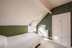 On the first floor, you will discover two of the five elegantly designed bedrooms: one featuring a king-sized bed and the other furnished with two single bed. Both rooms are equipped with the softest pillows and duvets, alongside ample storage space. Additionally, a well-appointed bathroom on this floor includes a bath, toilet, and wash basin.