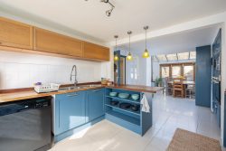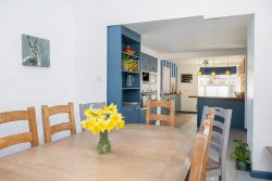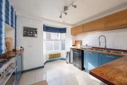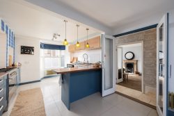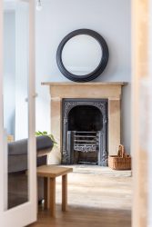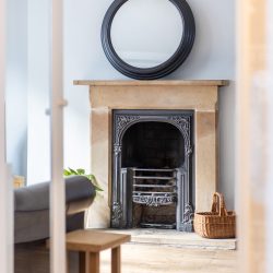 As you enter the hallway at West End, you are greeted by a glimpse of the exquisite interiors that await. The sitting room exudes elegance, bathed in natural light from the bay window, with stylish sofas arranged around a period fireplace, with open fire creating a warm and inviting space to reflect on the day’s experiences.