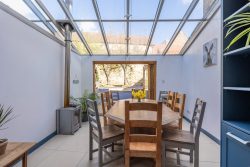 From the French doors in the dining room, you can access a private courtyard, perfect for enjoying an evening drink or that essential morning coffee.