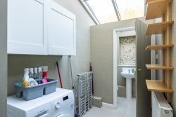 Additionally, a convenient utility area featuring a washing machine and a downstairs WC is situated on the ground floor.